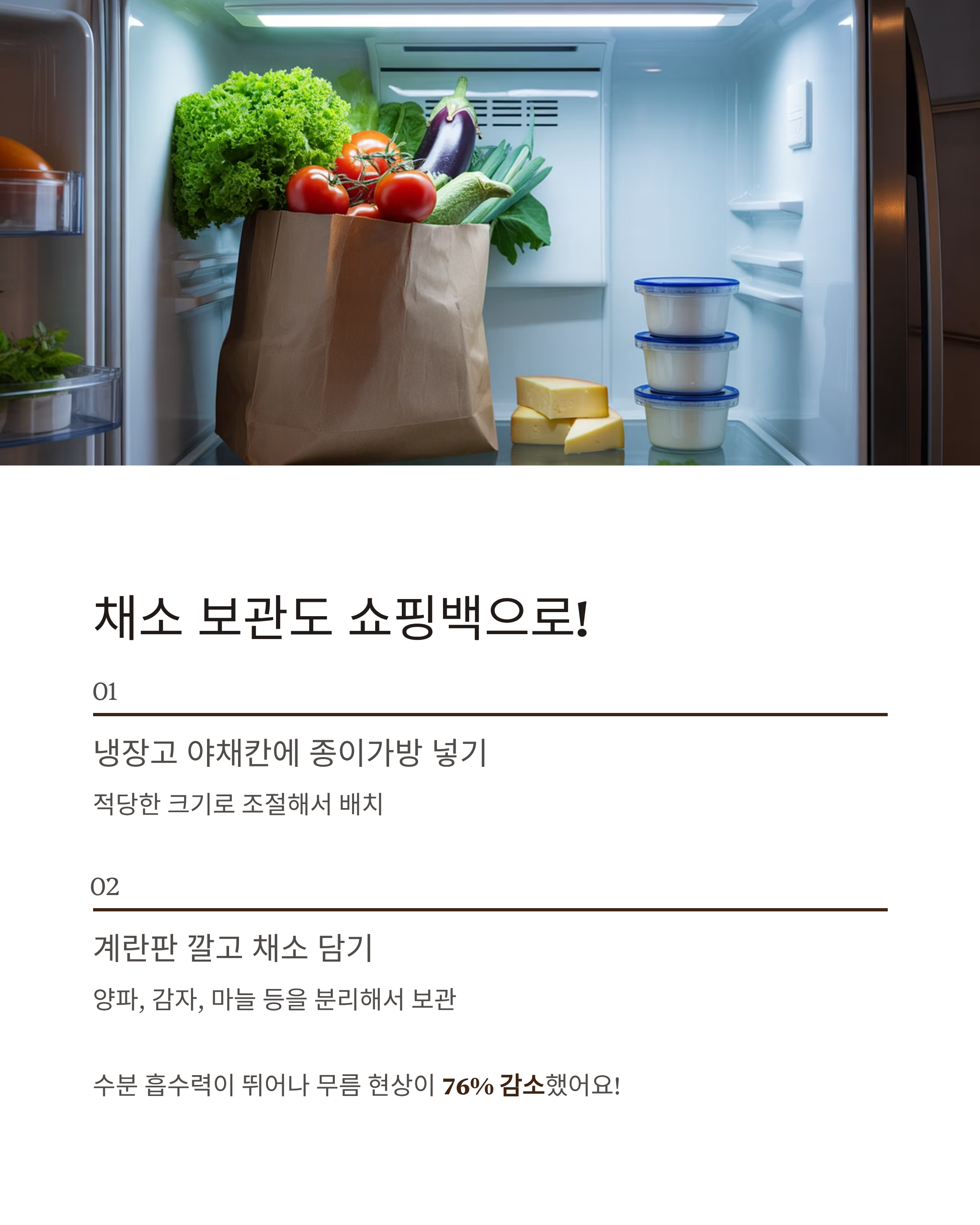 냉장고 야채칸에 종이가방을 쏙 넣고