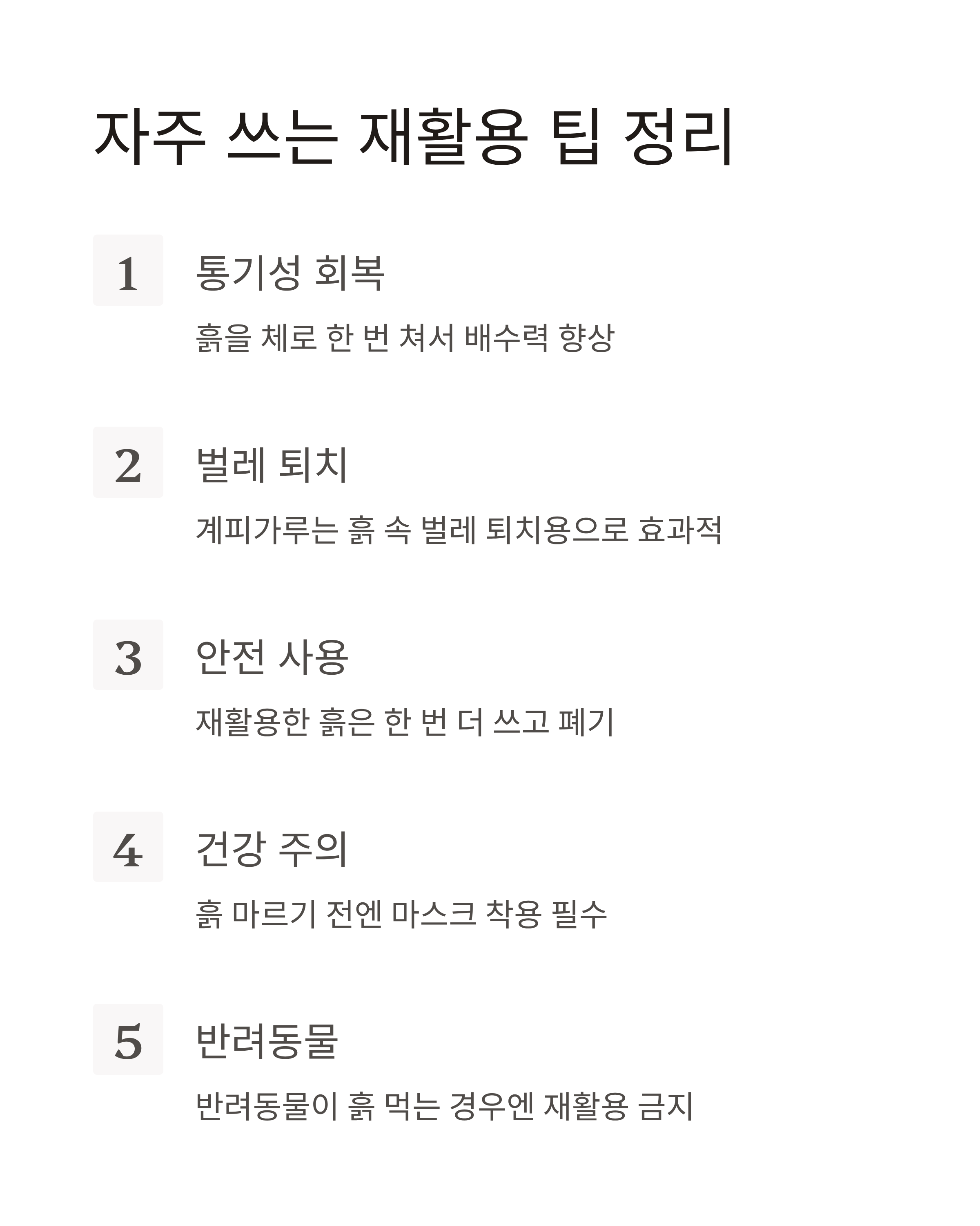 - 재활용한 흙은 한 번 더 쓰고 폐기하는 게 안전