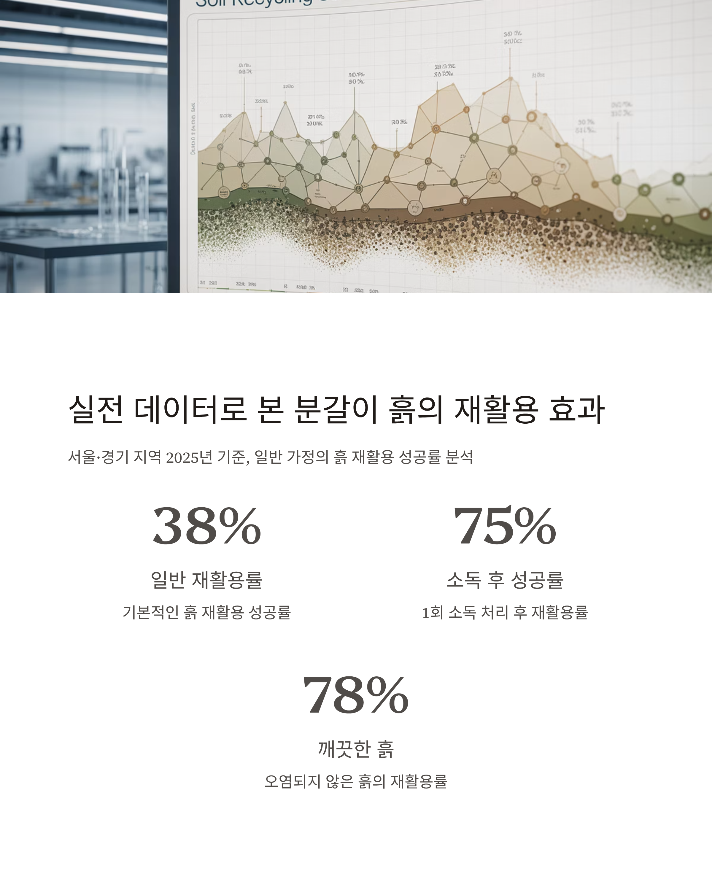 서울·경기 지역 2025년 기준, 일반 가정의 흙 재활용 성공률은 약 38%.