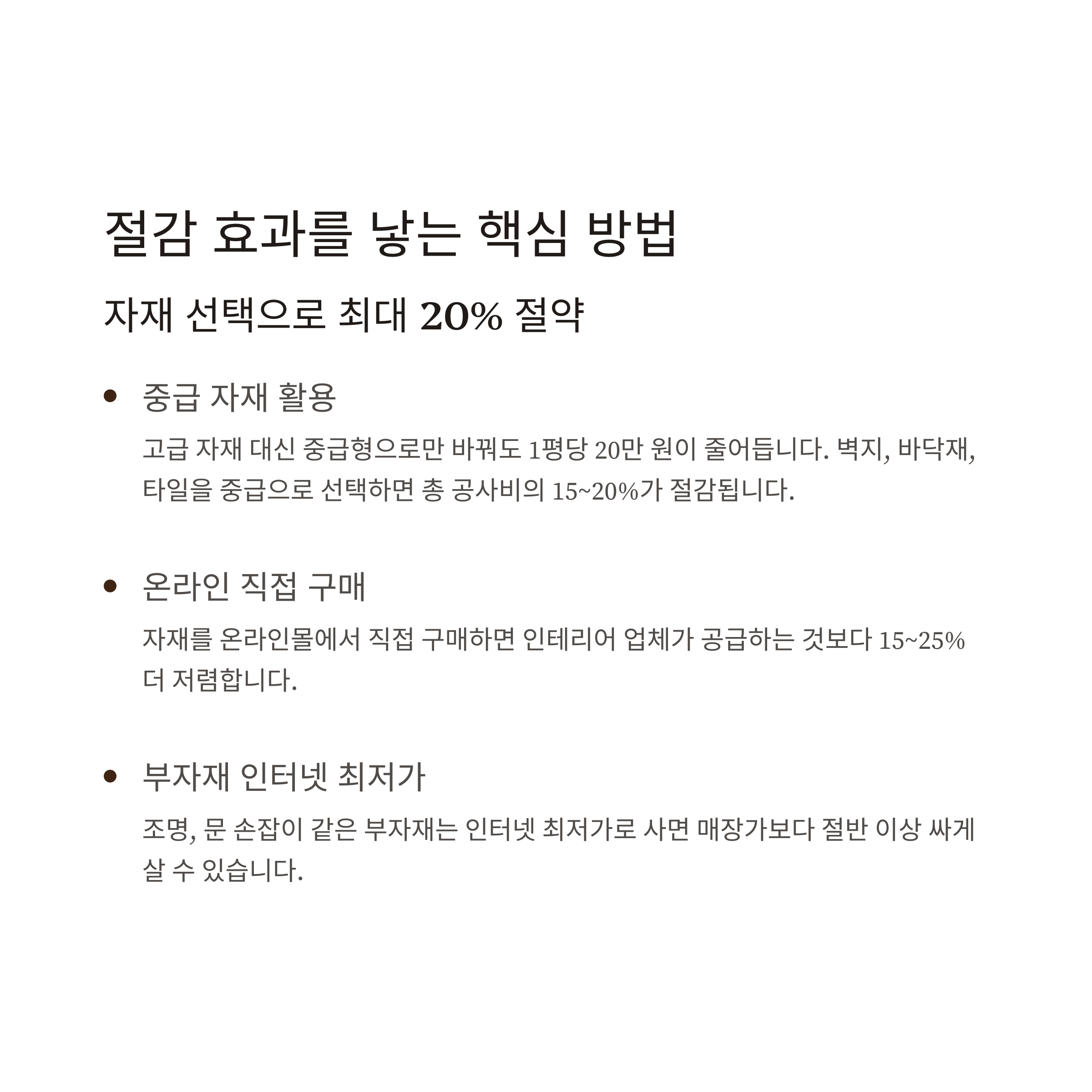 자재 선택으로 최대 20% 절약