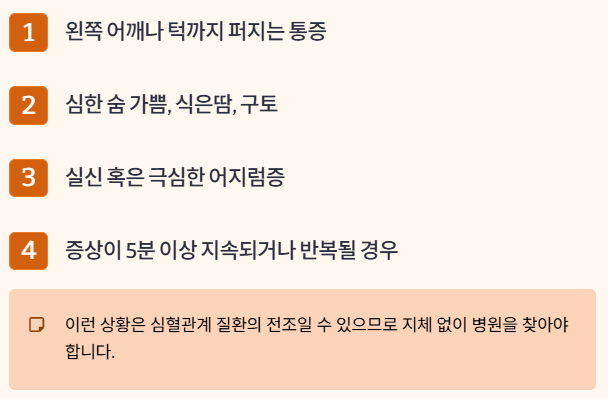 1. 왼쪽 어깨나 턱까지 퍼지는 통증