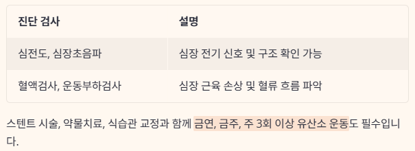 혈액검사, 운동부하검사 심장 근육 손상 및 혈류 흐름 파악