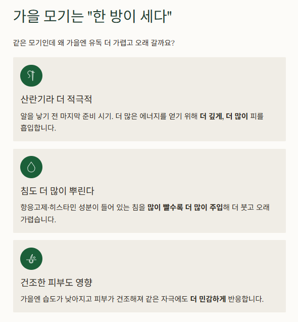 같은 모기인데 왜 가을엔 유독 더 가렵고 오래 갈까요?