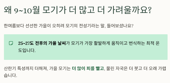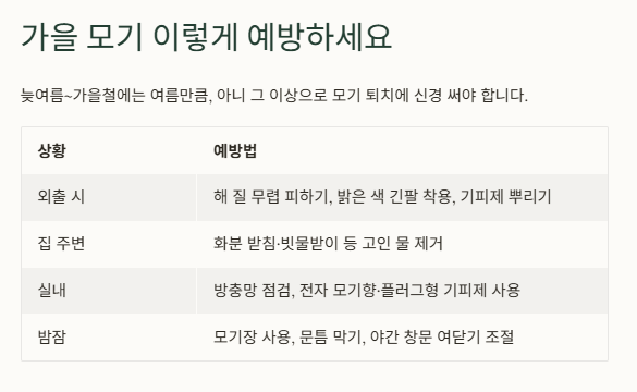 가을 모기는 단순히 “가려운 불청객” 그 이상입니다.