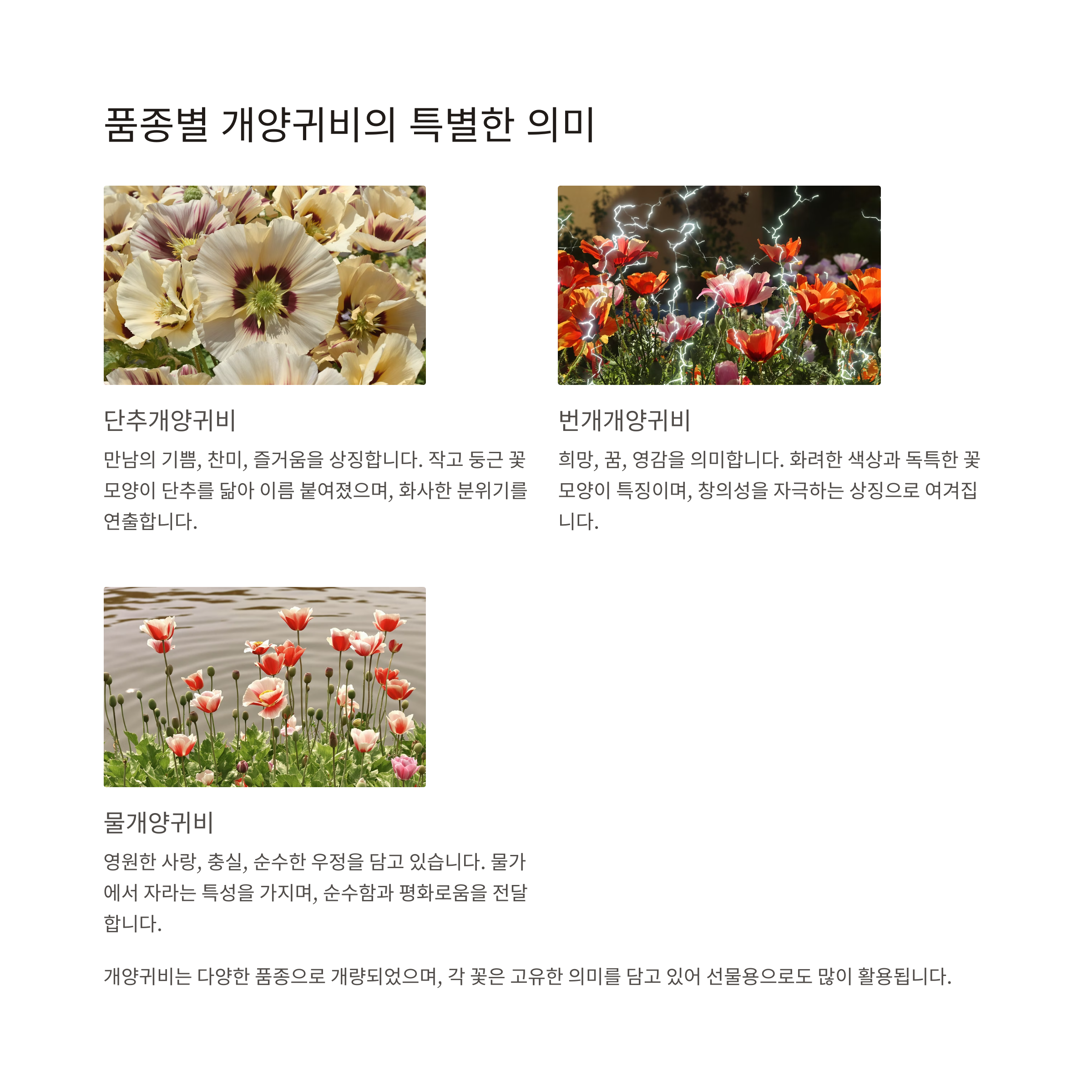 개양귀비는 다양한 품종으로 개량되었으며,
