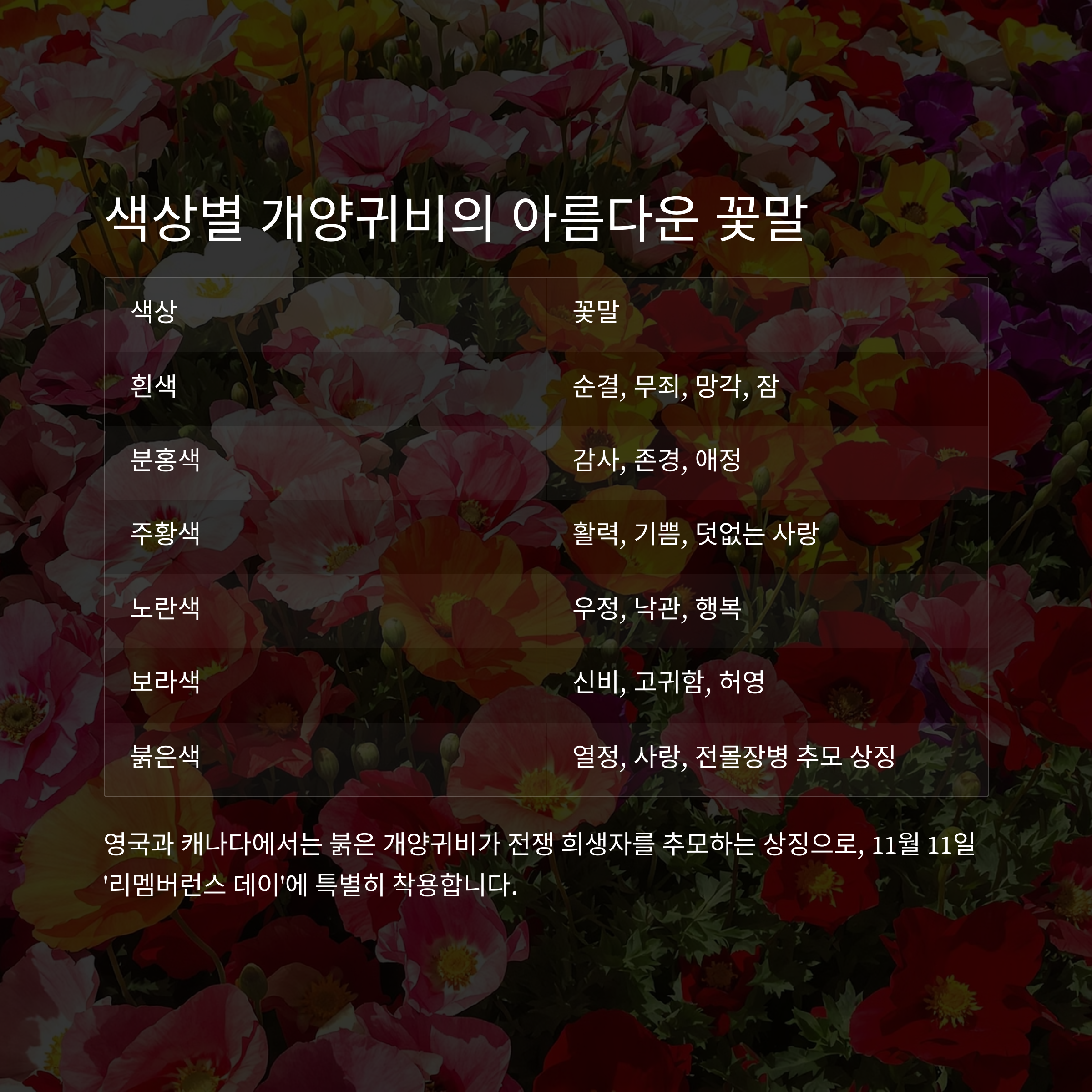 색상별 꽃말로 보는 개양귀비의 아름다움