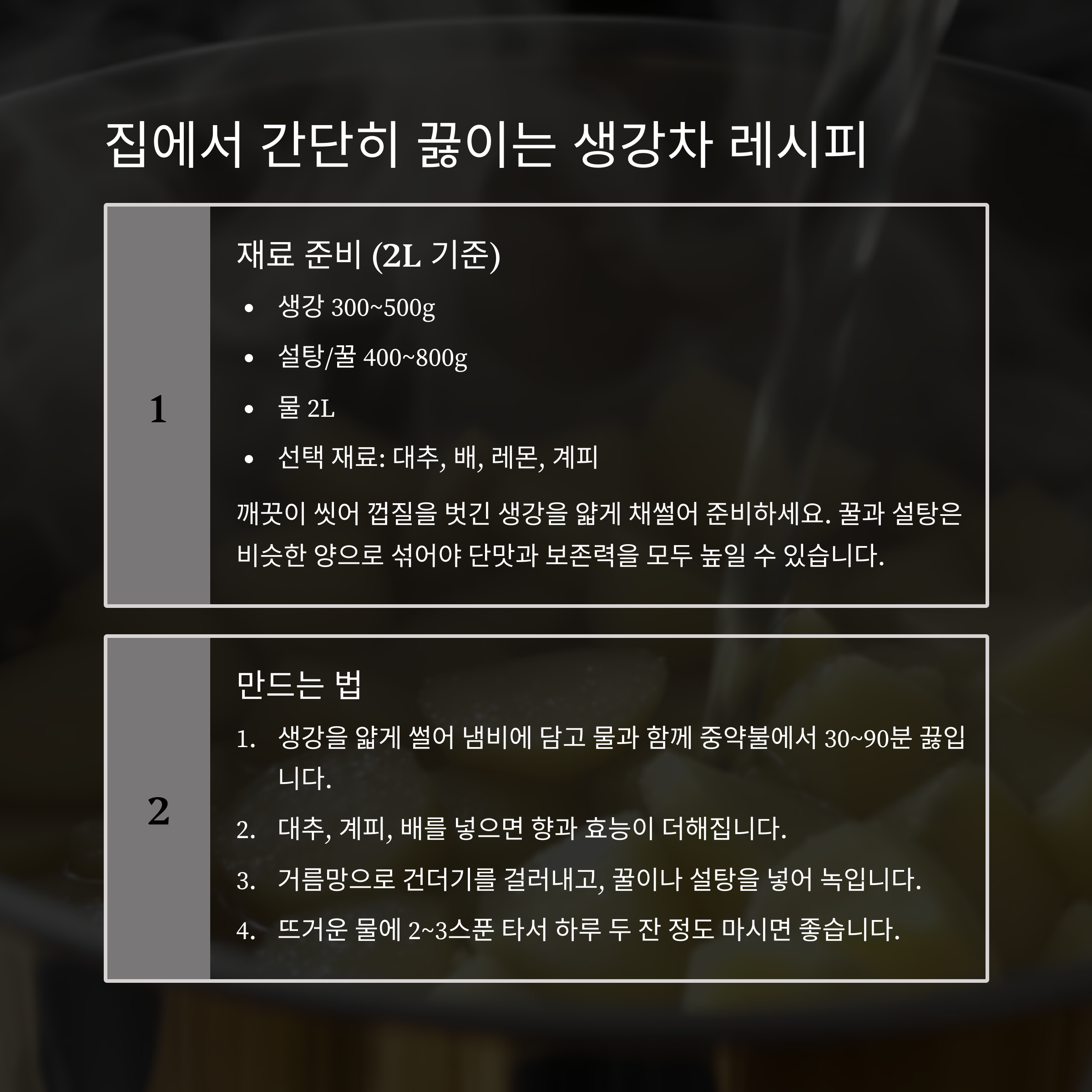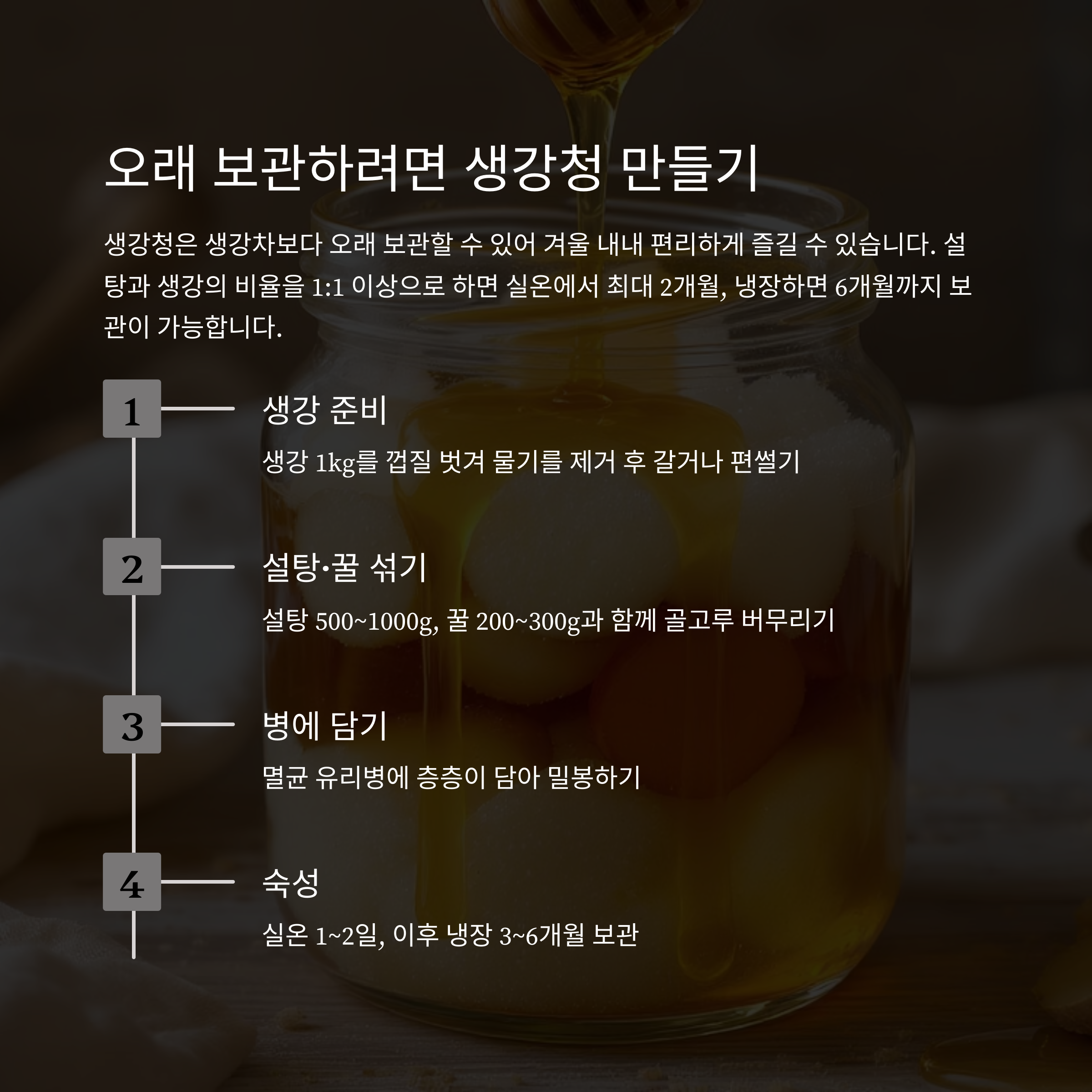 | 생강청 보관기간 | 실온 1~2개월, 냉장 3~6개월 |