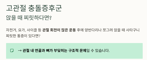→ 관절 내 연골과 뼈가 부딪히는 구조적 문제일 수 있습니다.