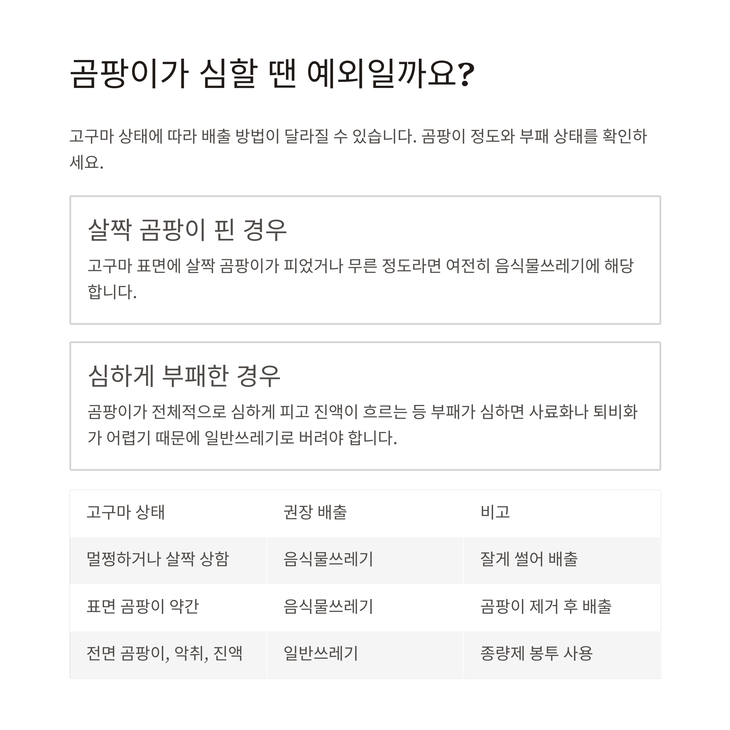 | 표면 곰팡이 약간 | 음식물쓰레기 | 곰팡이 제거 후 배출 |