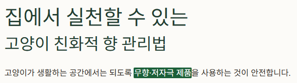 | 방향제 사용 | 고양이 활동 공간과 멀리, 낮은 농도로 제한 |