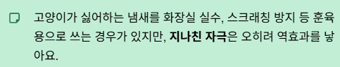 - 고양이 화장실 근처에는 식초, 세정제 향도 최소화