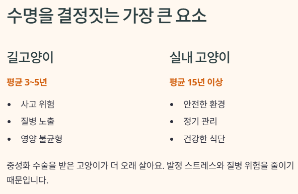고양이를 실내에서 키우느냐, 길에서 사느냐에 따라 수명이 확연히 다릅니다.