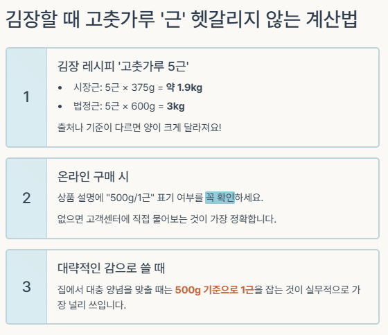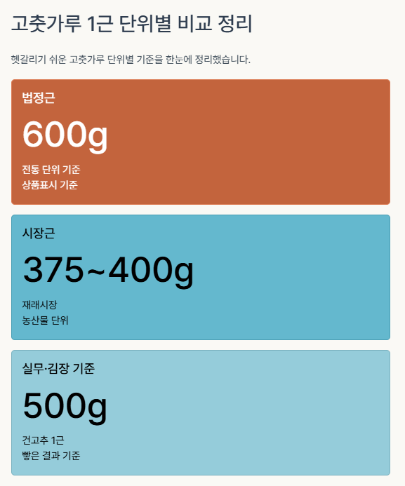 고춧가루를 살 때마다 "1근이면 몇 g이지?" 하고 헷갈리셨다면, 이 글이 도움이 되실 거예요.