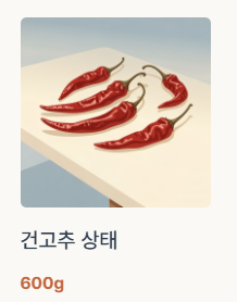 | 실무 기준 | 건고추 600g 빻아 만든 양 | 약 500g | 김장·레시피 환산 기준 |