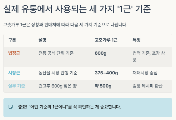 고춧가루를 살 때마다 "1근이면 몇 g이지?" 하고 헷갈리셨다면, 이 글이 도움이 되실 거예요.