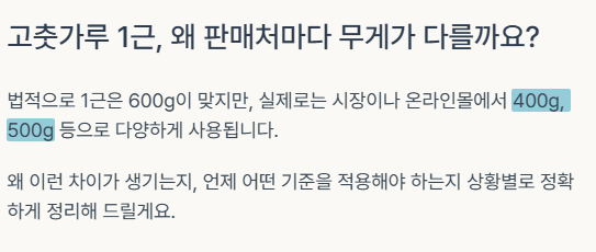 그래서 고춧가루 판매에서는 "1근"이 꼭 600g이 아닐 수 있는 것입니다.