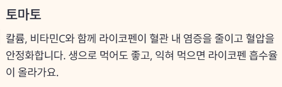 칼륨, 비타민C와 함께 라이코펜이 혈관 내 염증을 줄이고 혈압을 안정화합니다.