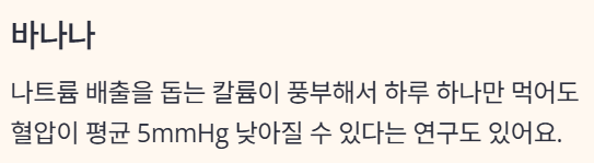 | 바나나 하루 섭취 시 혈압 변화 | 평균 5mmHg 감소 |
