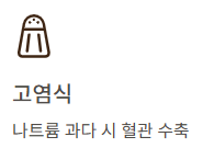 | 고염식 | 나트륨 섭취 과다 시 혈관 수축 및 수분 정체 유도 |