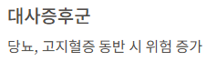 | 대사증후군 질환 | 당뇨, 고지혈증 등과 동반 시 위험 증가 |