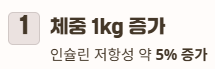 체중 1kg 증가할 때마다 인슐린 저항성은 약 5% 증가합니다.