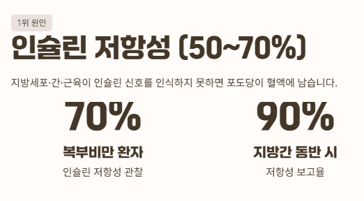 1위 원인 인슐린 저항성 50~70%
