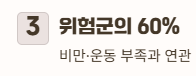 전체 고혈압·당뇨 위험군의 약 60%가 비만·운동 부족과 연관됩니다.