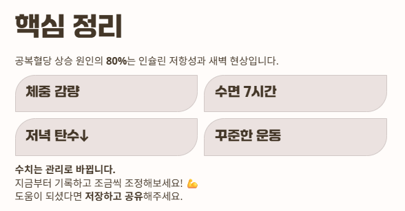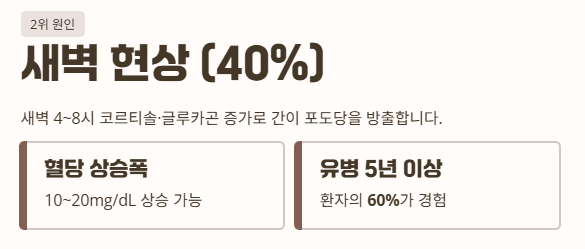 | 새벽 현상 | 아침 산책, 약물 상담 | 10~20mg/dL ↓ |