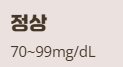 | 정상 | 70~99 | 1% 미만 |