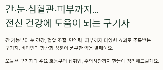 특히 음주 후 간이 피로할 때 따뜻한 구기자차 한 잔이 부담 없이 좋은 선택이 될 수 있어요.