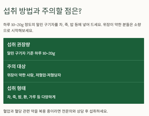 섭취 권장량 말린 구기자 기준 하루 10~20g