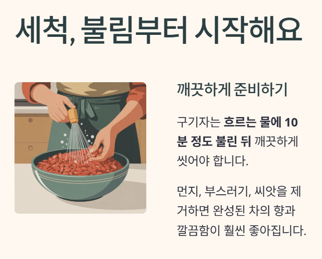 한눈에 보는 구기자차 끓이기 요약표