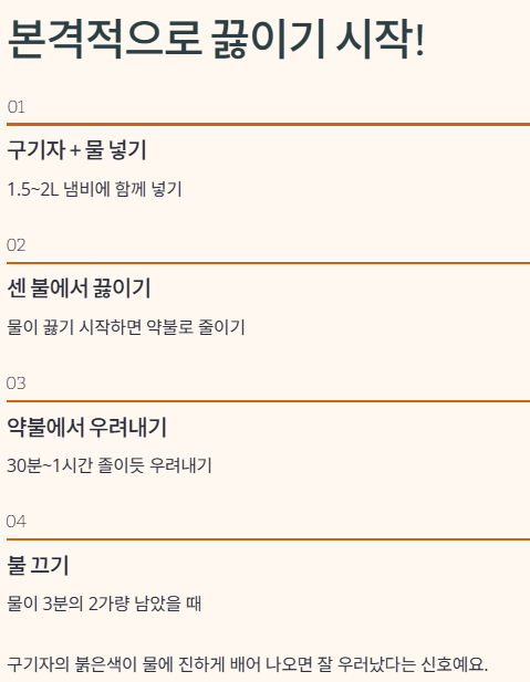 | 3단계 | 약불에서 30분~1시간 졸이듯 우려내기(최대 2시간 가능) |