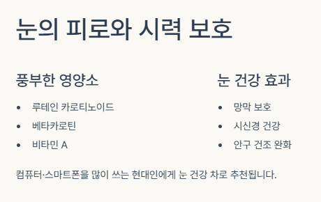 노화에 따른 노안·야맹증 예방 차원에서도 좋은 보조 식품입니다.