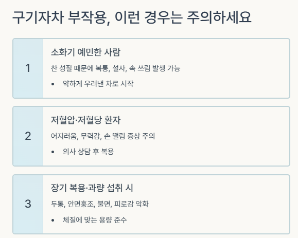 하지만 모든 사람에게 무조건 좋은 건 아닙니다. 위장이 약하거나 혈압·혈당이 낮은 사람, 약을 복용 중인 경우에는 조심해서 마셔야 합니다.