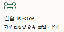 칼슘이 하루 권장량의 약 15~20%를 충족합니다.