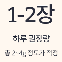 하루 1~2장, 총 2~4g 정도가 권장되며, 아이들이나 임산부, 갑상선 환자는 전문가와 상담 후 섭취하는 것이 좋습니다.
