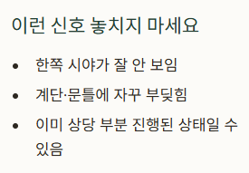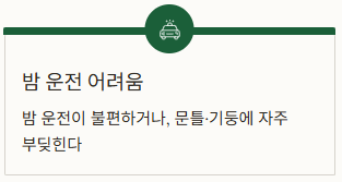 - 밤 운전이 불편하거나, 문틀·기둥에 자주 부딪힌다