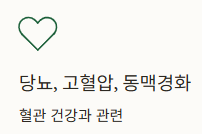 | 당뇨, 고혈압, 동맥경화 | 혈관 건강과 관련 |
