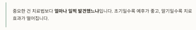 초기일수록 예후가 좋고, 말기일수록 치료 효과가 떨어집니다.
