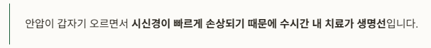 안압이 갑자기 오르면서 시신경이 빠르게 손상되기 때문에 수시간 내 치료가 생명선입니다.