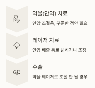 | 약물(안약) 치료 | 안압 조절용, 꾸준한 점안 필요 |