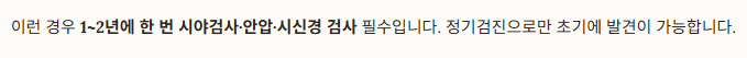 | 일반인 (40세 이상) | 1~2년마다 안과검진 |