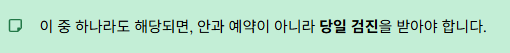 이 중 하나라도 해당되면, 안과 예약이 아니라 당일 검진을 받아야 합니다.