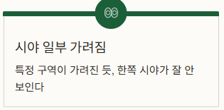 - 특정 구역이 가려진 듯, 한쪽 시야가 잘 안 보인다