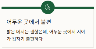 - 밝은 데서는 괜찮은데, 어두운 곳에서 시야가 갑자기 불편하다