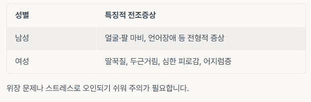 | 성별 | 특징적 전조증상 |