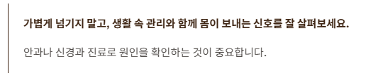 단순한 문제가 아닐 수 있으므로 안과나 신경과 진료로 원인을 확인하는 것이 중요합니다.