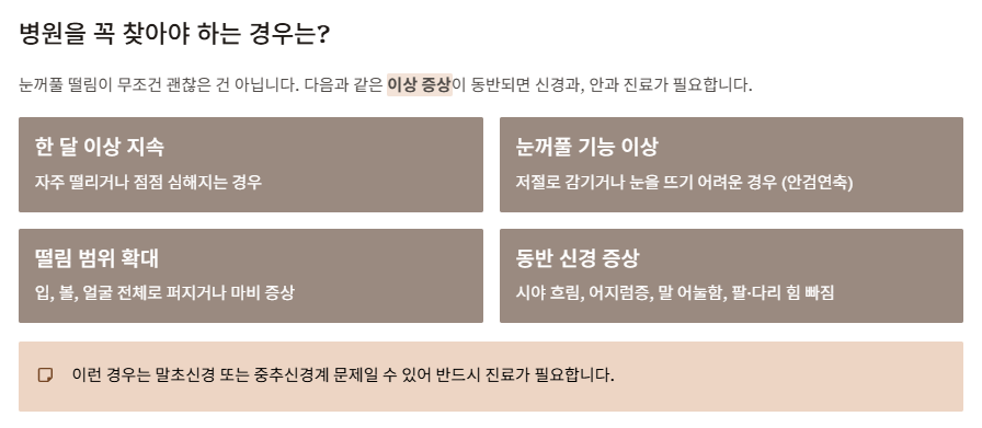 - 한 달 이상 눈꺼풀이 자주 떨리거나, 점점 심해지는 경우