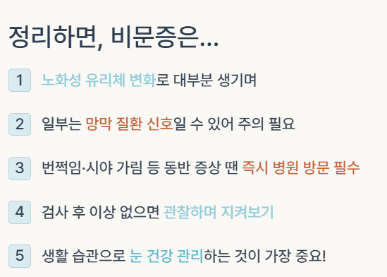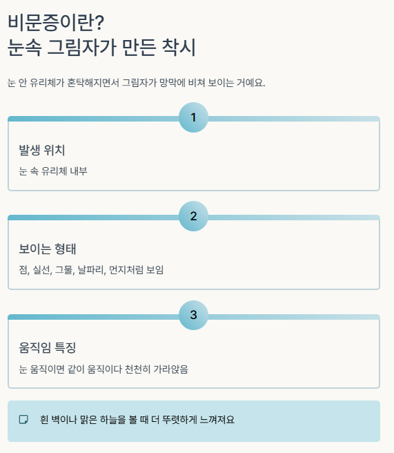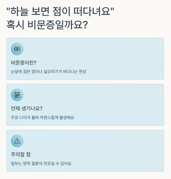- 일부는 망막 질환 신호일 수 있어 주의 필요